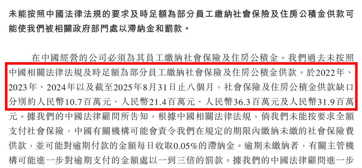 需要关心的是,老乡鸡欠缴员工社保问题照旧存正在,招股书显示,正在2022年、2023年、2024年以及截至2025年8月31日的八个月,老乡鸡社会安全及住房公积金供款缺口别离为1070万元、2140万元、3630万元及3190万元,合计超1亿元。同期因社会安全差额而可能面对罚款的潜正在最高罚款额则将别离约为1610万元、4270万元、8190万元及7470万元。
