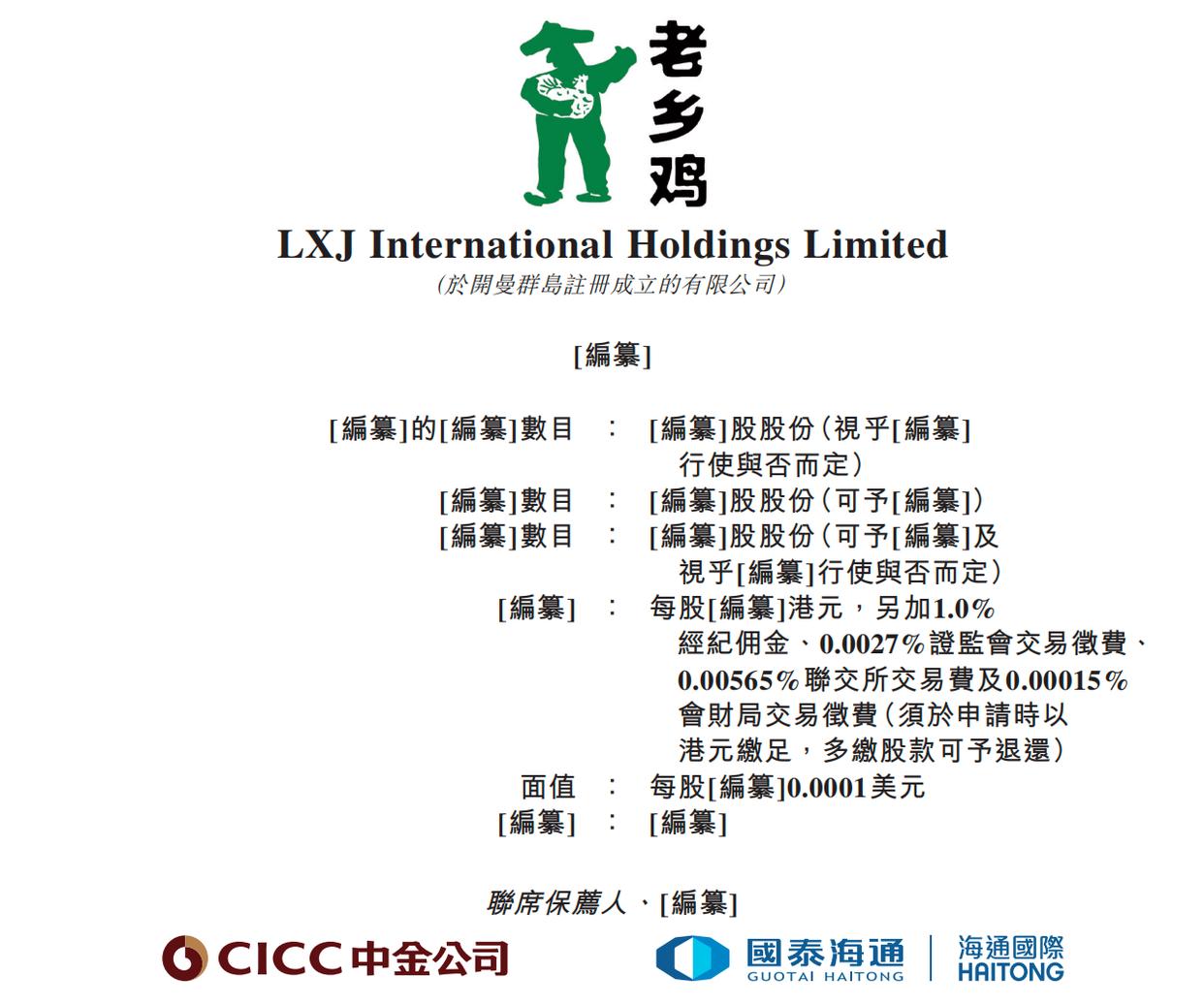 近日,南都N视频记者留意到,中式快餐连锁“一哥”安徽老乡鸡餐饮无限公司的控股公司LXJ International Holdings Limited (以下简称“老乡鸡”)再度正在港交所更新了招股书,此前,其正在客岁1月3日和7月7日先后两度递表,但均已失效,此番继续由中金公司和海通国际担任联席保荐人。
